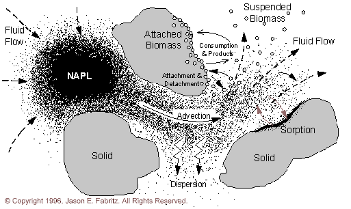Movement and Biodegradation of Contaminants in a Saturated Aquifer © Copyright 1996, Jason E. Fabritz. All Rights Reserved. |