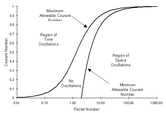 Figure 3.8.3 Maximum and Minimum Courant Number Criteria for one-dimensional