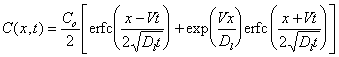 Where: t = time (T) x = distance from inlet (L) Co = concentration at inlet (M/L3) V = pore water velocity (L/T) Dl = dispersion coefficient (L2/T)
