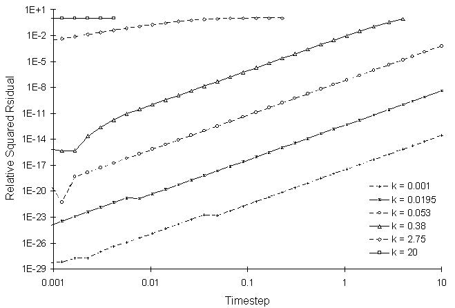 Figure 4.8.4 illustrates the Relative Squared Residual as a function of calculation time step: