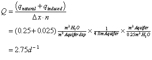 The width of the node is 4.0 m due to the change in mesh size between regions. Node 72 represents the injection trench. It is 42.5 m from the aquifer boundary. The calculation of injection flow rate is: