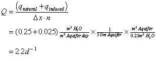 One injection trench and one extraction trench create the region of backwards flow. Node 20 contains the extraction trench. It is 102.5 m from the aquifer boundary. Equation (5.10) illustrates the calculation for the extraction flow rate: