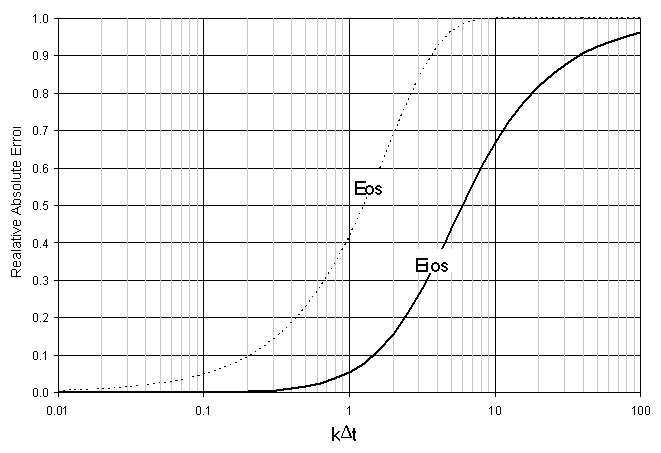 Which is a function of kD t, the same as the error term derived by V&M for standard OS. Figure B.1 illustrates the differences in error between these two methods. It should be noted, the IOS error is reported as an absolute value. The IOS error is negative in value but less in magnitude than OS.