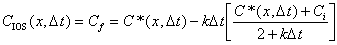 C*(x,D t) is the "perfect" solution to the advective-dispersive equation at the end of timestep D t at location x. Now continuing with the IOS form of equation (15) of V&M: