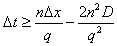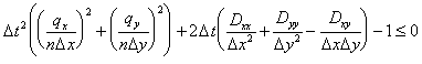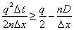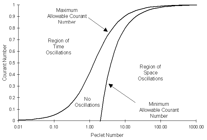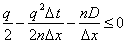 Consider a special case of the one dimensional example above. In the case of a retreating solute front, d C/d x > 0, d C/d t < 0, q > 0, the flux out of a node over a timestep must not be greater than the solute concentration in that node. Or in other words, the flux cannot be so great that it will cause the concentration at the end of the timestep to become negative. In mathematical terms this can be stated.