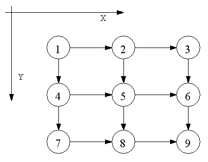 Equations (E.18) and (E.21) are only for one dimension. It is necessary to repeat the analysis for two dimensions. Consider the case of the following node segments in two dimensions: