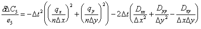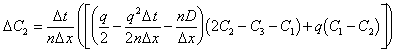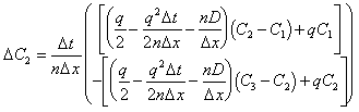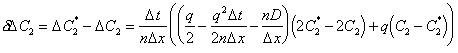 Now, over a timestep, D t, the change in concentration at node two can be given as: