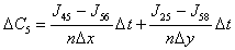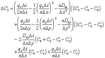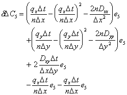 Over the timestep, D t, the change in concentration at node five can be given as: