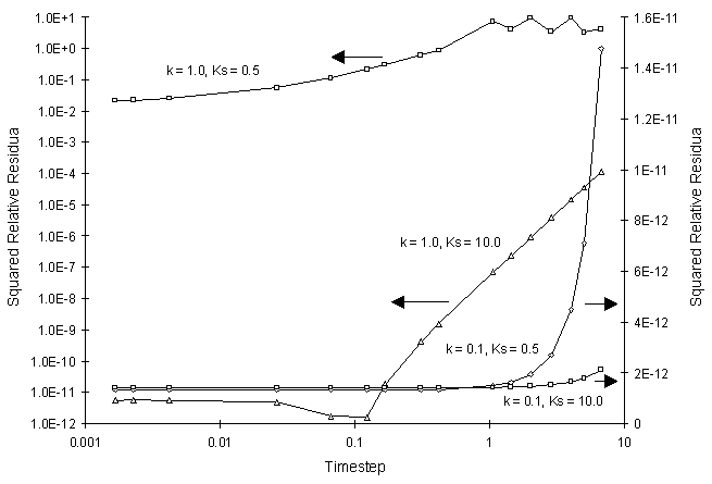 Figure F.6 Squared Relative Residual as a Function of Global Timestep for