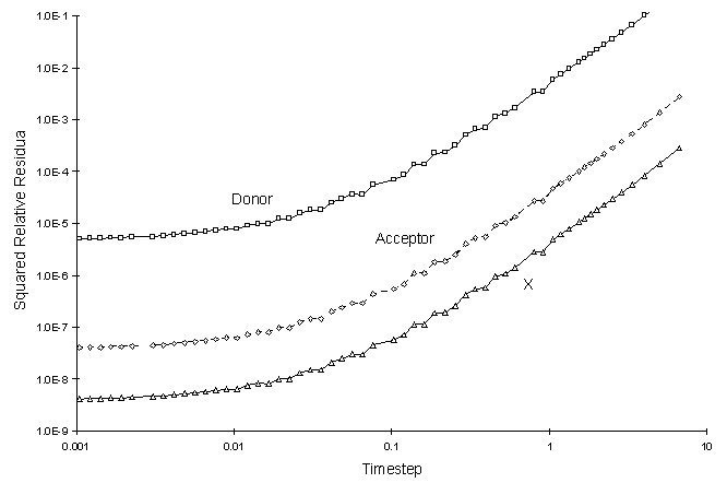 Figure F.8 Squared Relative Residual as a Function of Global Timestep for