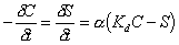 Where: Where: C = concentration of solute species (M/L3) S = concentration of sorbed species (M/L3) a = rate coefficient (T-1) Kd = sorption coefficient