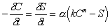 Where: C = concentration of solute species (M/L3) S = concentration of sorbed species (M/L3) a = rate coefficient (T-1) k = sorption coefficient n = sorption coefficient